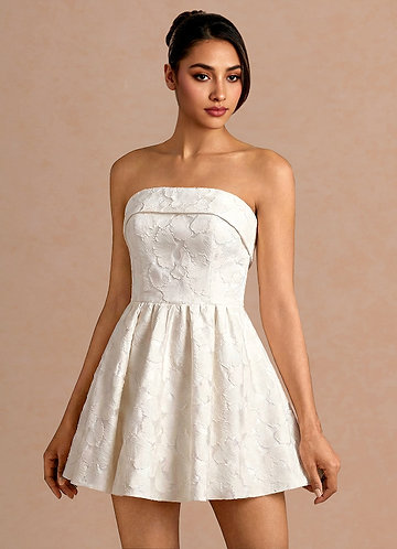 azazie Quessia French White Mini Dress