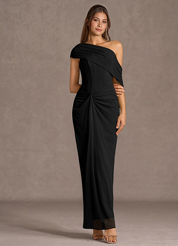 azazie Hermosa Navy One Shoulder Maxi Dress