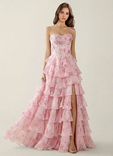 azazie Samara Pink Ruffled A-Line Prom Dress