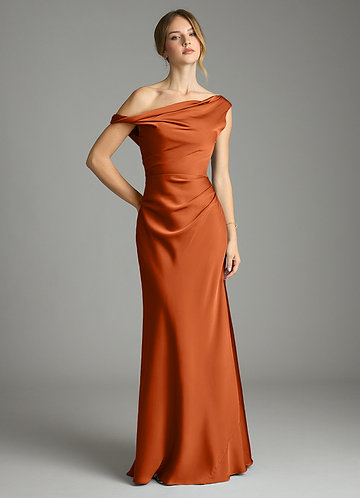 Burnt Orange Mermaid One Shoulder Stretch Satin Dress