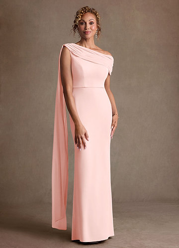 Azazie Amallia Light Pink Jacquard Mermaid Off the Shoulder Floral Jacquard Dress