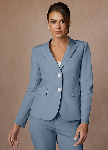 azazie Whitney Dusty Blue Structured Stretch Blazer
