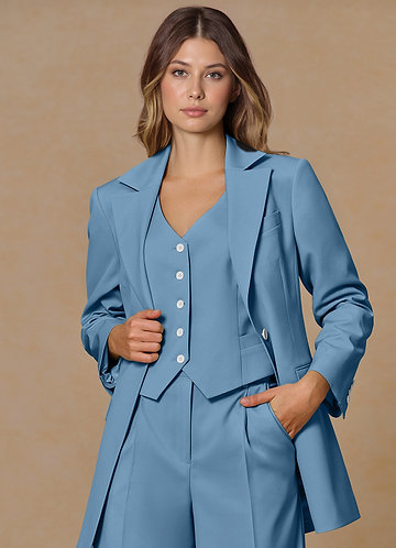 azazie Amelia Dusty Blue Refined Weave Performance Oversized Blazer