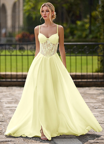 azazie Nimbus Light Yellow Cutout Corset Satin Prom Dress