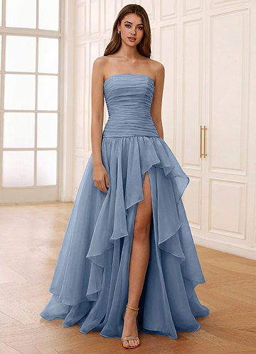 azazie Ocavivien Dusty Blue Tulle Prom Dress