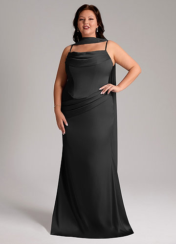 Azazie Sorrel Stretch Black Mermaid Strapless Stretch Satin Convertible Dress