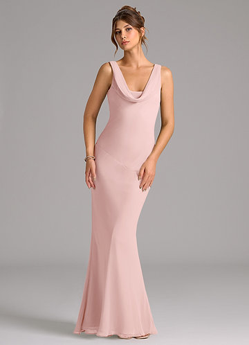 Azazie Azuree Stretch Desert Rose A-Line Pleated Stretch Satin Dress