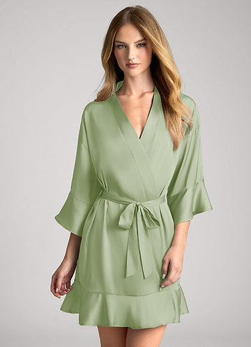 azazie Eucalyptus Ruffled Satin Long Sleeve Pajama Set