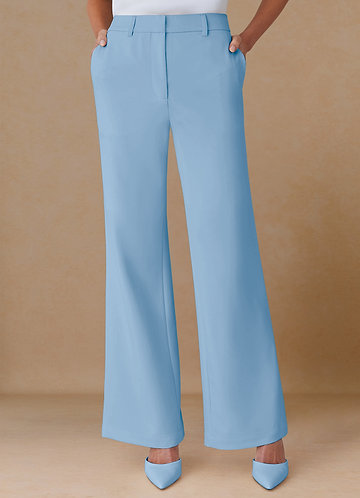 azazie Marina Sky Blue Refined Weave Straight-Leg Pants