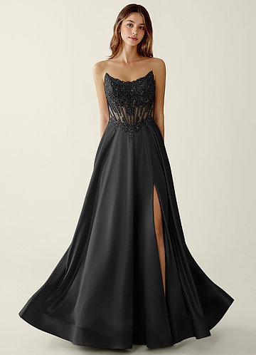 azazie Zuri Nero Abito da ballo a trapezio con corsetto avvolgente in raso