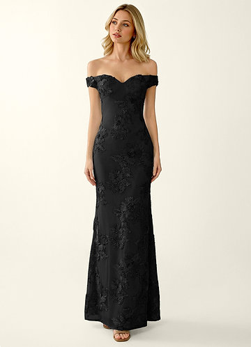 azazie Kailani Nero Abito da ballo a sirena con corsetto a fiori 3D e allacciatura sulla schiena