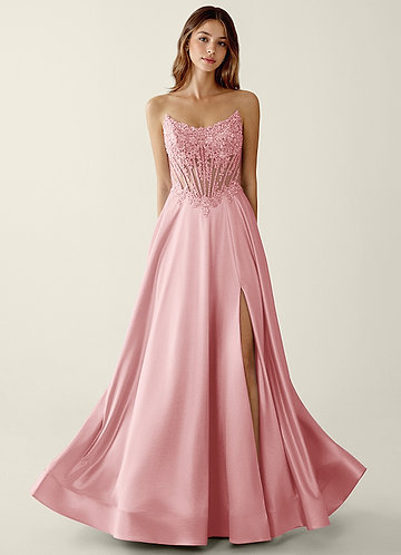 azazie Zuri Rosa Cipria Abito da ballo a trapezio con corsetto avvolgente in raso
