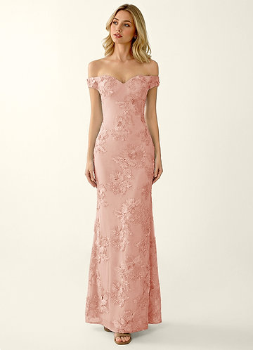 azazie Lowlala Rosa Inglese Abito da ballo in pizzo