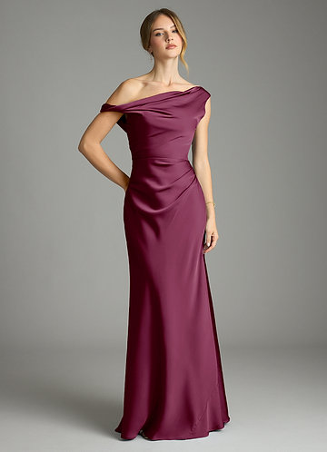 Azazie Charlize Elastico Abito A-Line in Raso Elasticizzato Monospalla Borgogna