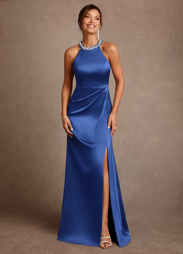 Azazie Halima Abito Tuta Pantaloni in Chiffon Spacco Laterale Marino Scuro