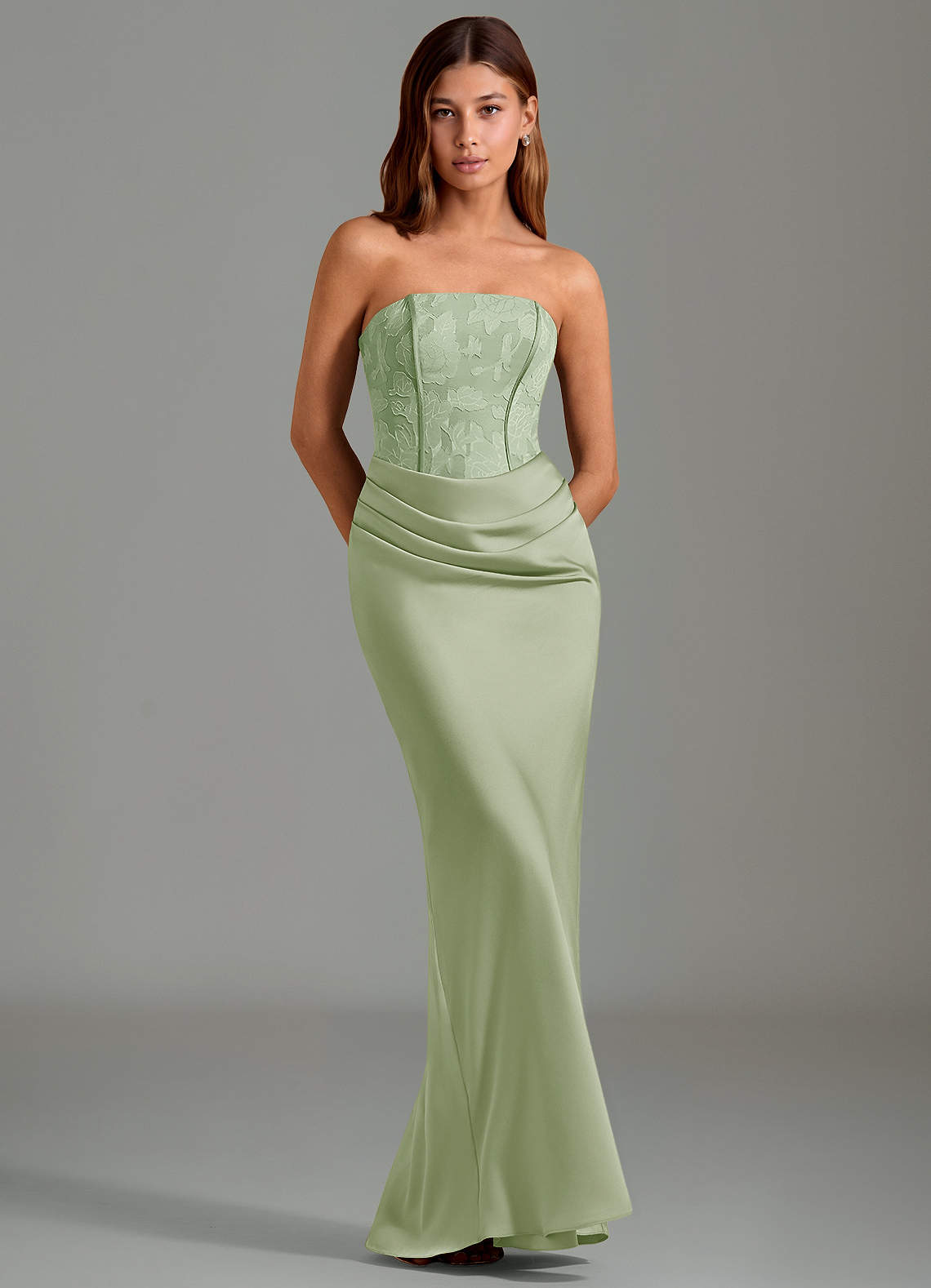 Abito Sirena in Raso Elasticizzato Senza Cinturino Verde Salvia