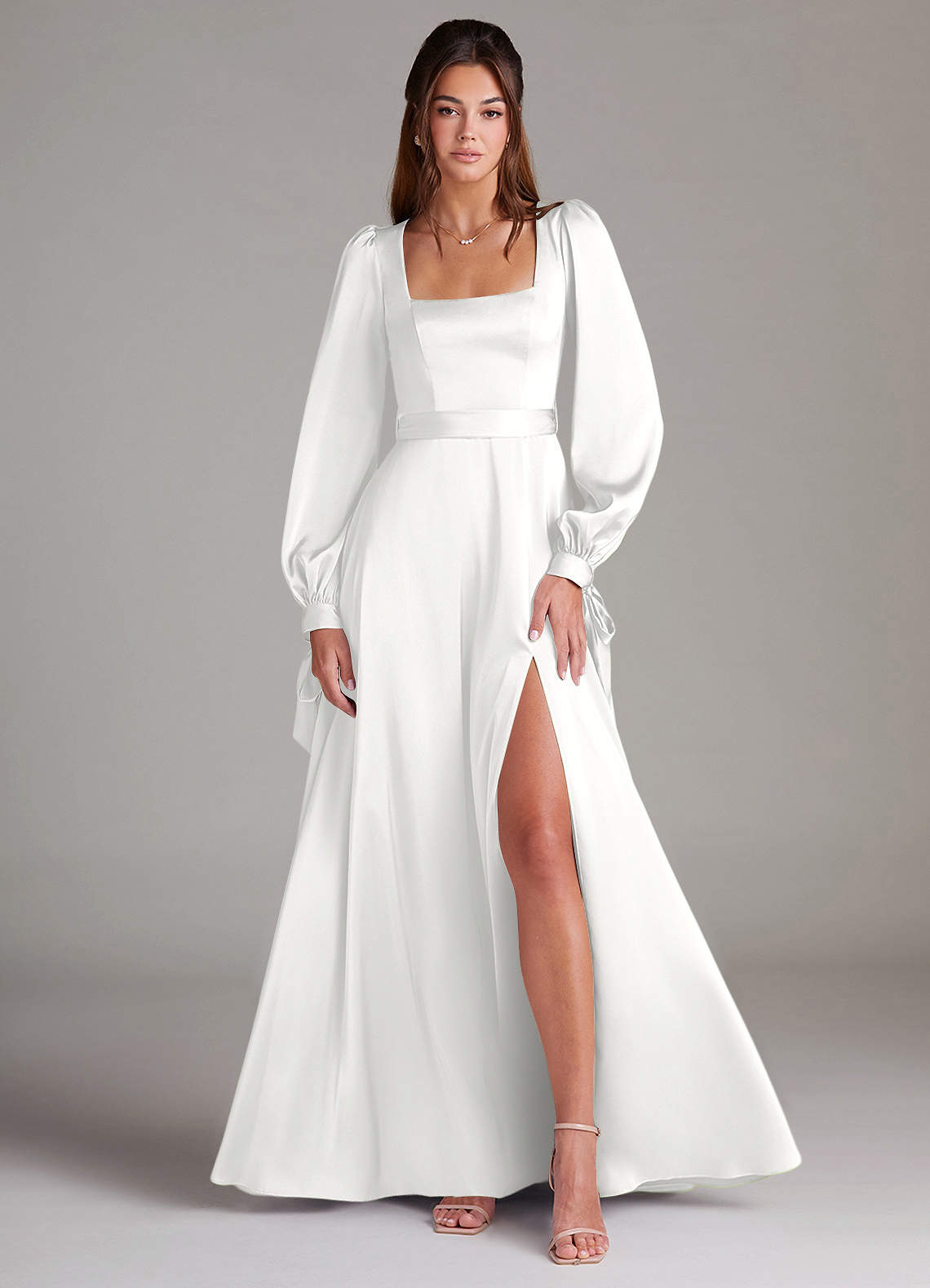Abito A-Line in Raso Elasticizzato Manica Lunga Bianco