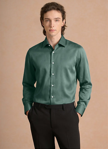 azazie Julian 유칼립투스 스트레치 새틴 드레스 셔츠