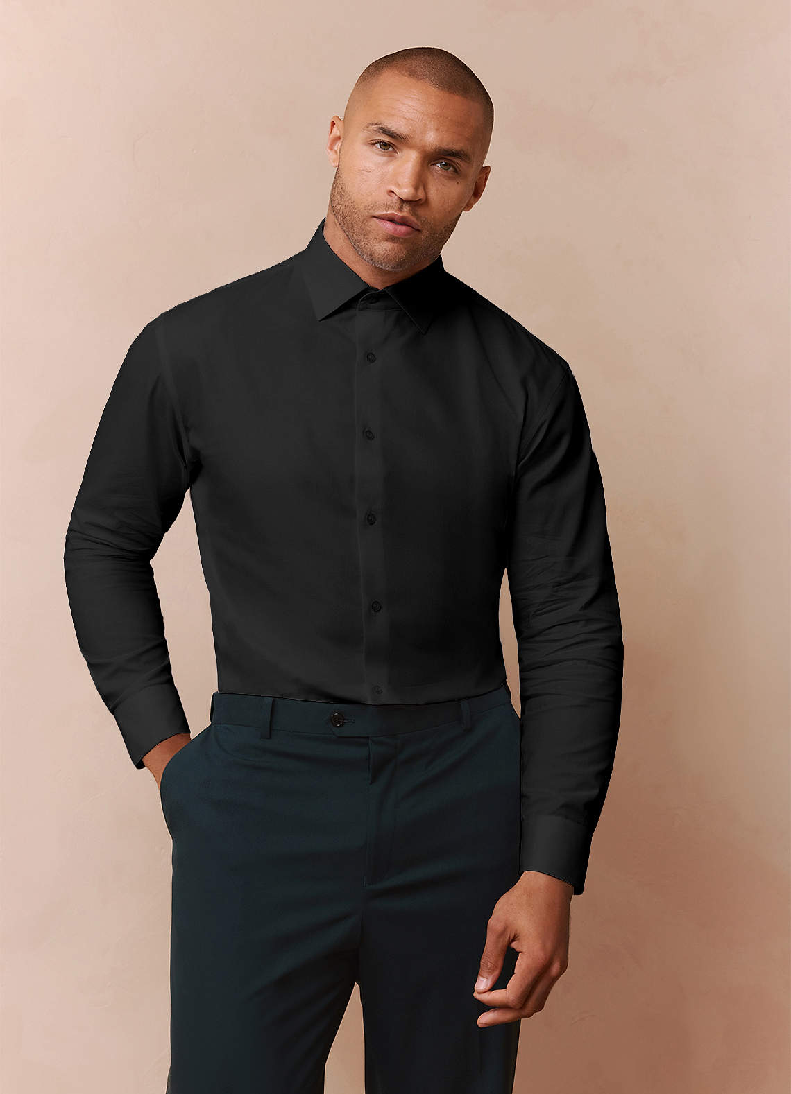 Jermyn 검은색 100% 면 논아이언 드레스 셔츠