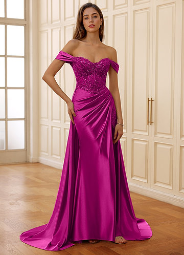 azazie Clementine Fuchsia Satijnen A-lijn galajurk met vetersluiting op de rug