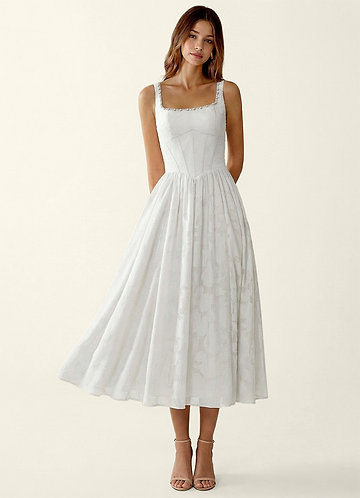 azazie Ottavia Wit Jacquard midi A-lijn afstudeerjurk