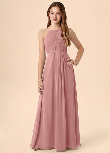 Jurk van Chiffon met A-Lijn Geplooid Stoffige Roos