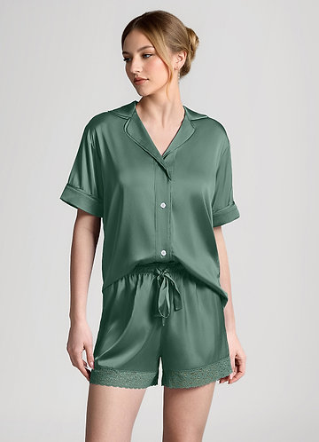 azazie Eucalyptus Pyjamaset met korte mouwen en satijnen kanten afwerking