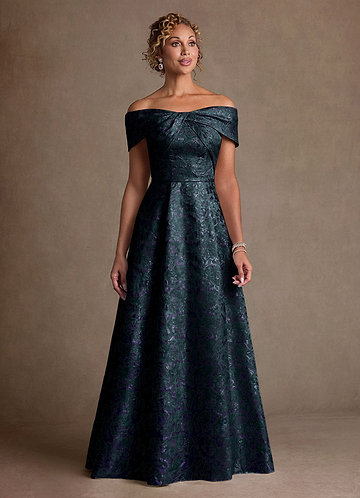 Linia A Zza ramienia Żakard kwiatowy Długość podłogi Sukienka