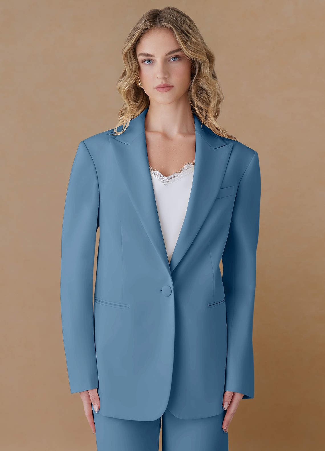 Amelia Steel Blue Refined Weave Performance Oversized Blazer
