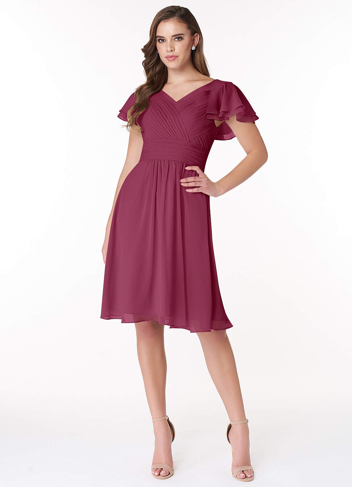 Azazie Hadley A-Line Pleated Chiffon Knee-Length Dress Mulberry