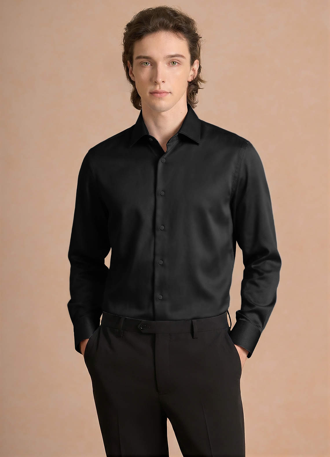 Julian Black Stretch Satin Dress Shirt