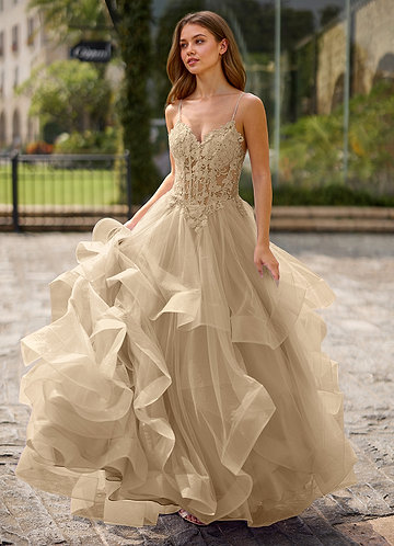 azazie Dreamscape Champanhe Vestido de baile em linha A