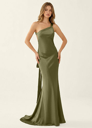azazie Persephone Verde Agave Vestido de baile de cetim
