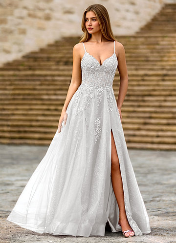 azazie Milliener Branco Vestido de baile com flores de tule