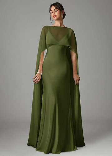 Vestido Oliva de Cetim elástico de sereia com Um ombro