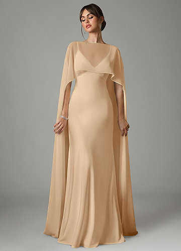 Vestido Champanhe de Cetim elástico de sereia com Sem alças