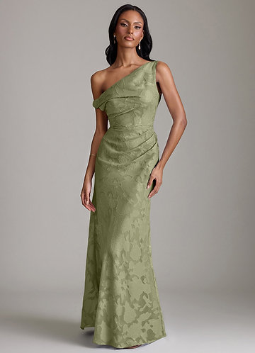Vestido Pistache de Esgotamento Floral de sereia com Fora do ombro