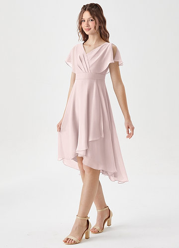 Vestido Rosa Corado de Chiffon de Linha A com Plissado