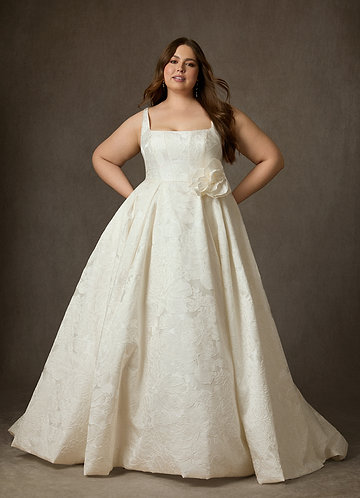 Azazie Ruby Vestido Branco Antigo de Jacquard Floral de Vestido de baile com com bolsos