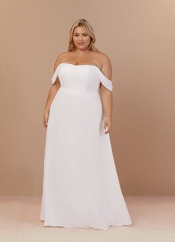 Azazie Caity Vestido Diamante Branco de Crepe Costas Cetim de Ajuste e Alargamento