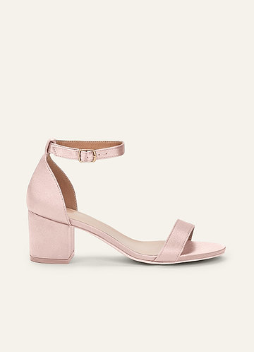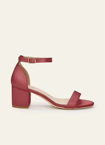 Sandálias de salto bloco com fivela e tira única em cetim fosco combinando
