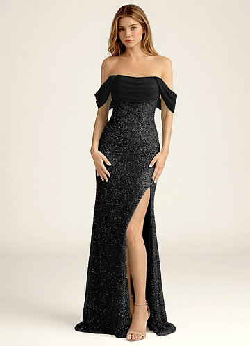 azazie Willone Svart Sjöjungfrubalklänning med paljetter och broderi