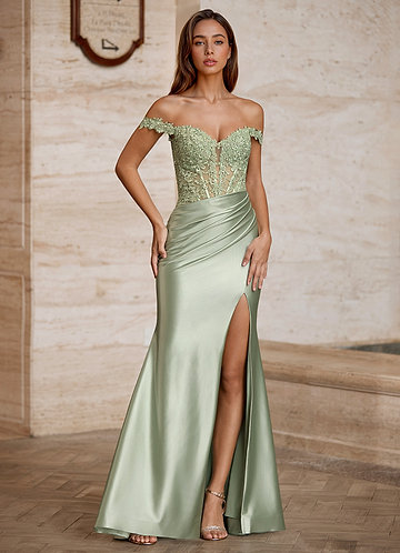 azazie Wrentino Ljusgrön Broderad applikation i satin med balklänning