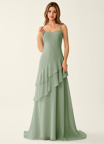 azazie Fiorella Ljusgrön Chiffong Volangklänning Med A-linje