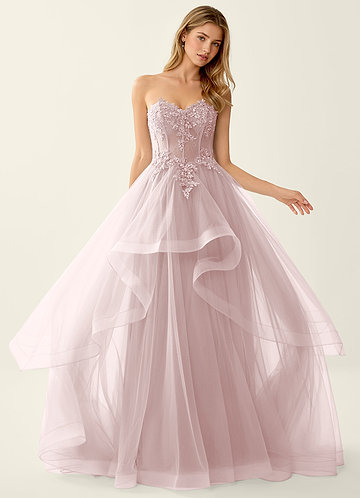 azazie Anais Pulverrosa Korsettbalklänning med snörning och volang i spets