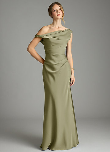 Klä av Sjöjungfru i Stretch Satin Ena axeln Matcha