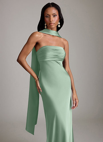 Klä av Sjöjungfru i Stretch Satin Axelbandslös Dusty Sage Konvertibel