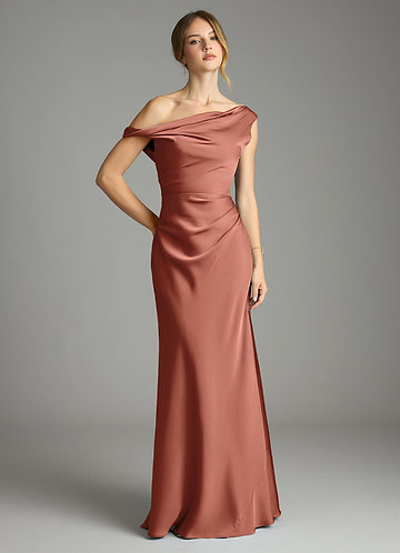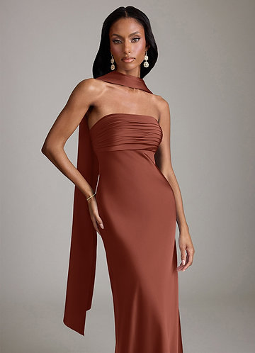 Klä av Sjöjungfru i Stretch Satin Ena axeln Kastanjebrunt
