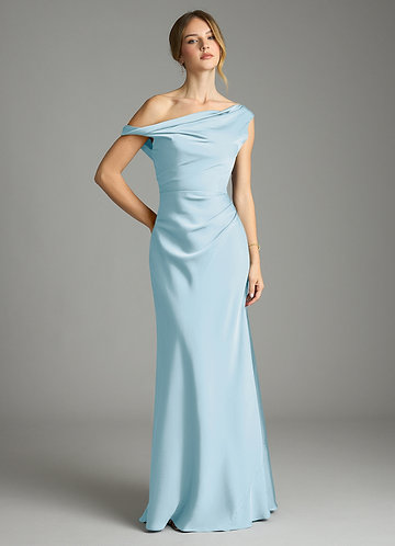Klä av Sjöjungfru i Stretch Satin Av axeln Himmelsblå