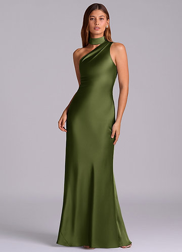Klä av Sjöjungfru i Stretch Satin Ena axeln Oliv